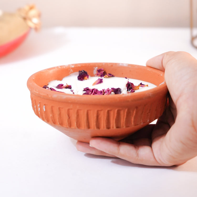Experience the calming scent of our Terracotta Scented Candle. It has real rose petals and is big. It will fill your room with a soothing aroma. Relax and unwind with every burn. This Diwali, bring home more than just a diya. Our scented diya is a perfect blend of elegance, craftsmanship, and fragrance.