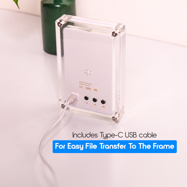 Transfer videos, pictures, and music from your computer/laptop to the frame with the help of the USB cable
