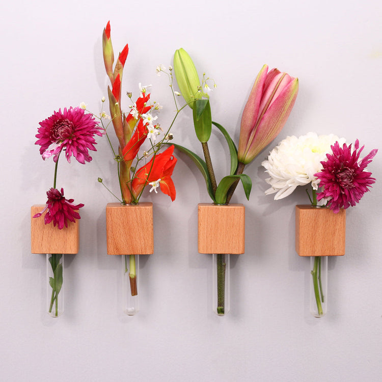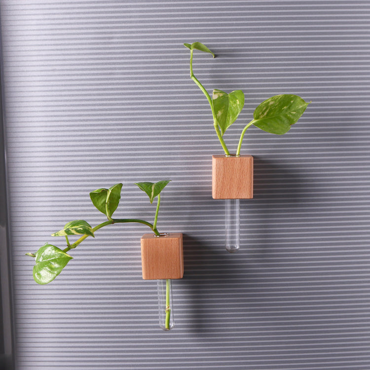 Enhance your space effortlessly with the Minimalist Magnetic Test Tube Flower Vase Set, a stylish blend of modern design and natural charm. This wooden cube vases with test tubes provides a unique way to display fresh flowers, dried stems, or greenery in your home or office.