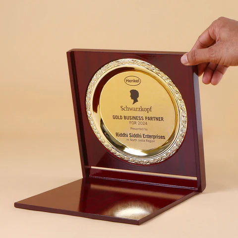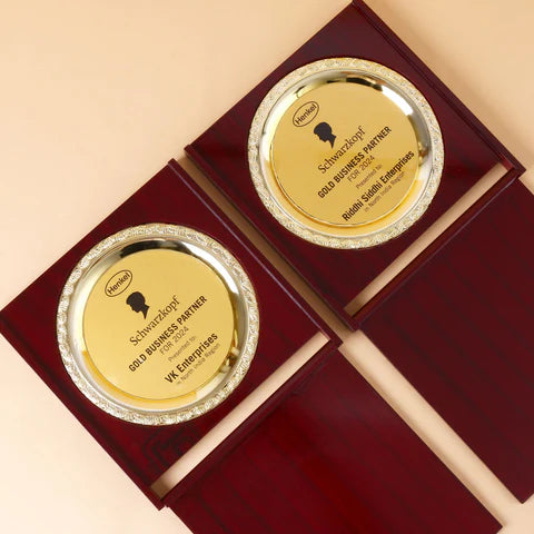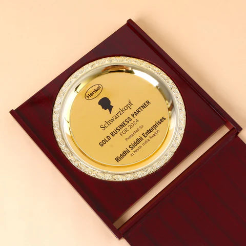 A prestigious award plaque combining elegance with craftsmanship. This wooden presentation box opens to reveal a striking gold-finish metal plate, ideal for recognizing business excellence, partnerships, or special achievements—a perfect token for corporate milestones and top-tier collaborations.