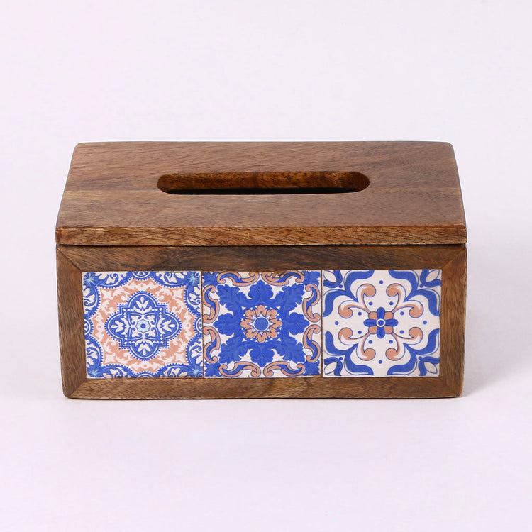 Add a touch of art to your everyday with this handcrafted wooden tissue box, decorated with colorful Moroccan-style tiles. Its bold design brings warmth and character to any corner, while the smooth lid makes refilling quick and easy.