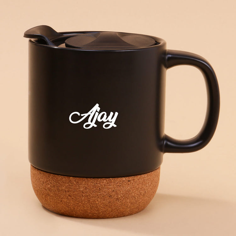 - Classic Black Mug with Cork Base